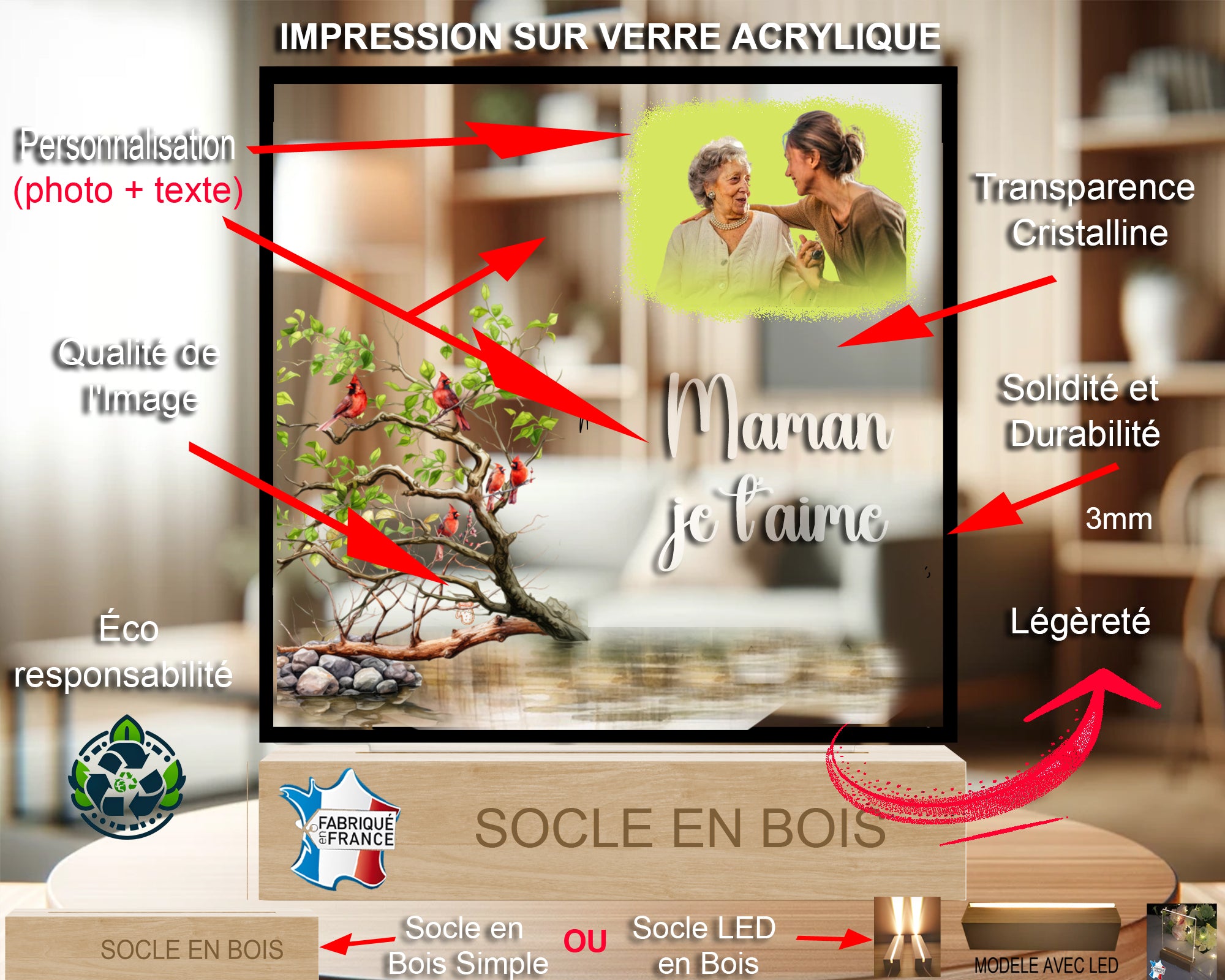 Notre service de personnalisation vous offre l'espace pour exprimer vos sentiments les plus profonds. Avec la possibilité d'intégrer des noms, des dates et des messages sur mesure, vous pouvez façonner un souvenir aussi unique que votre amour. Laissez les détails parler et immortalisez l'impact inestimable de Maman sur une plaque en verre éclatante qui traverse le temps.