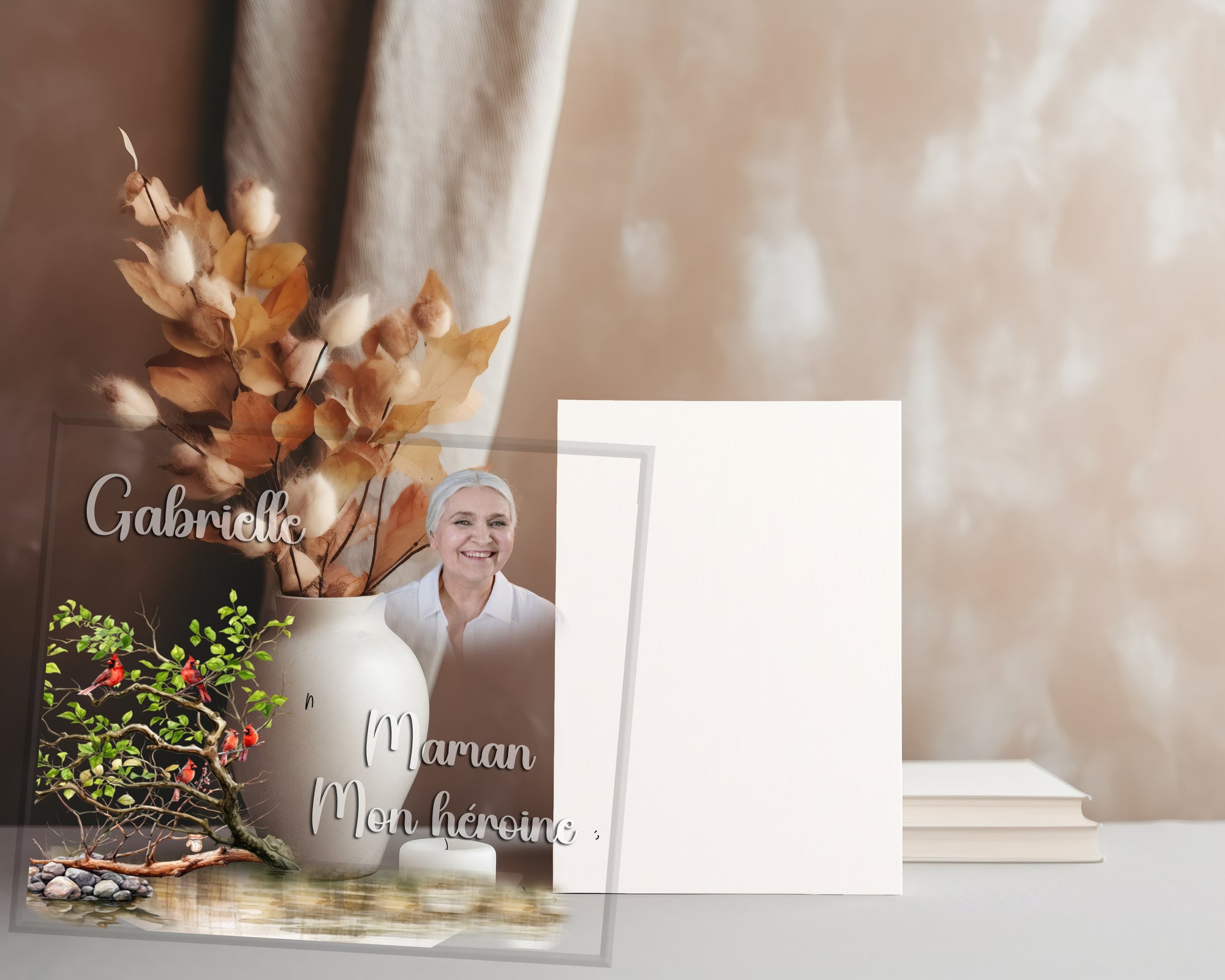 Plaque Hommage en Verre Acrylique – Maman, Mon Héroïne' avec Socle en Bois